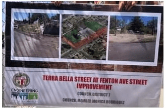 Issue: For over two decades, the Lake View Terrace community and students at Fenton Charter Public School have sought to have a sidewalk put at Fenton and Terra Bella Avenue. Council woman, Monica Rodriguez, secured funding totaling nearly $800,000 to bring project to fruition. Improvements include the installation of a new sidewalk, retaining wall, street resurfacing, new lighting, street widening, new road striping, and continental crosswalks and access ramps. Also removed dead trees and roots along the walking path. These major changes will enhance the safety of students and families walking to and from school.